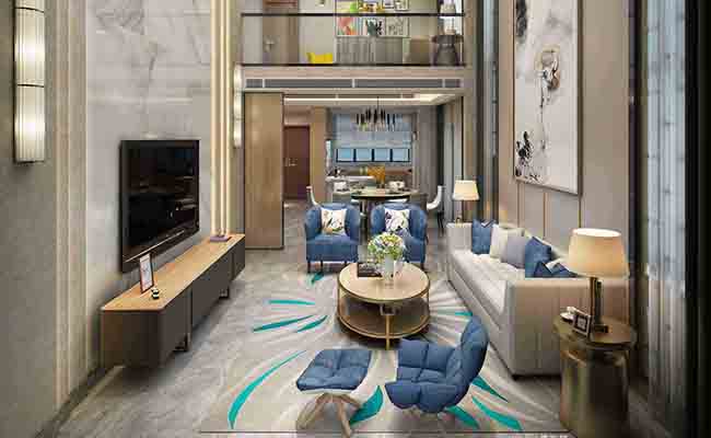 復(fù)式精裝房局改地面及背景造型,軟裝效果